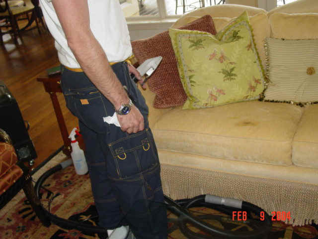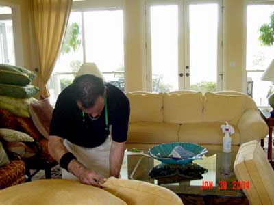 - Dry cleaning on location - we use the very latest methods to safely dry clean using safety solvents. We can clean materials you may have been told are too delicate, by their nature or from age. "Bleeders" - "dry clean only" - or goods you have been told are "uncleanable" - many times can be safely cleaned using our procedures.
